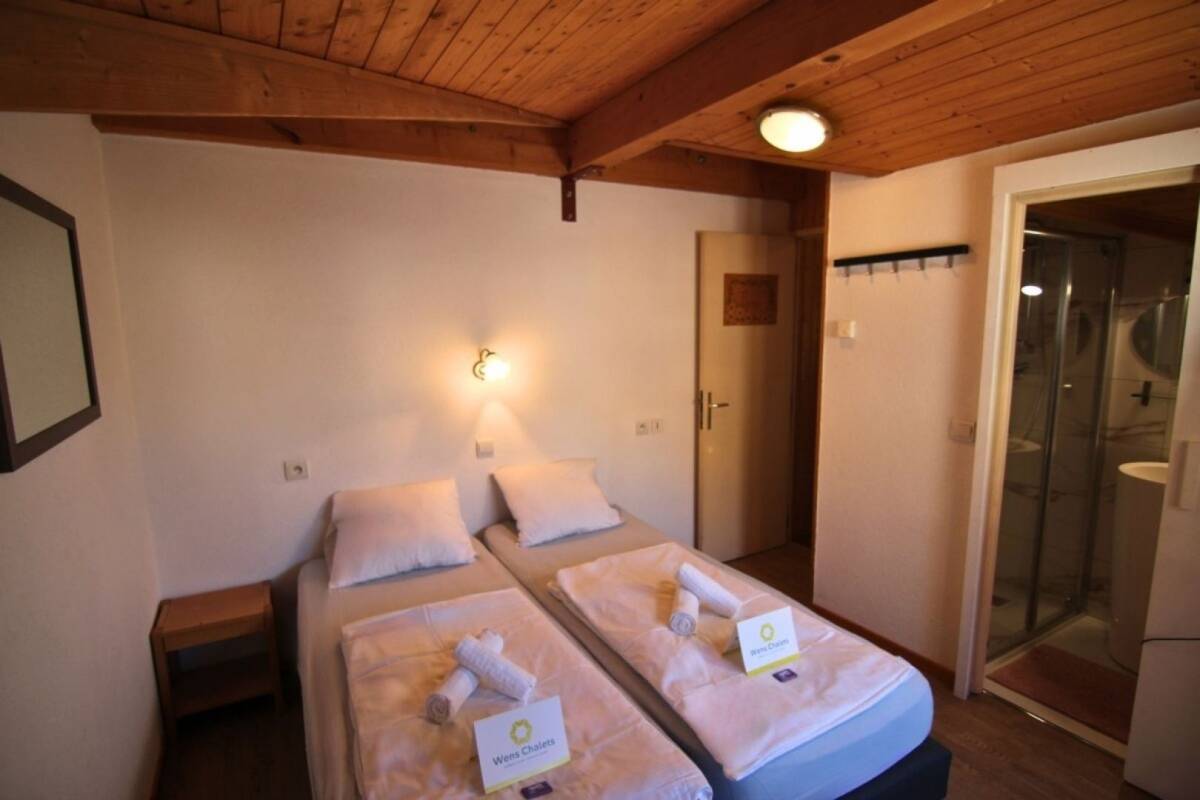 Chalet Alpaka features thirteen bedrooms: ten twin rooms, two triple rooms, and one quadruple room, all with their own ensuite bathroom and toilet for optimal privacy. This characteristic Wens Chalet offers a charming veranda with lounge sofas and fantastic views. Located in the cozy, authentic center of Châtel, a short distance from the ski lifts, this spacious chalet is perfect for individual bookings and group reservations.
