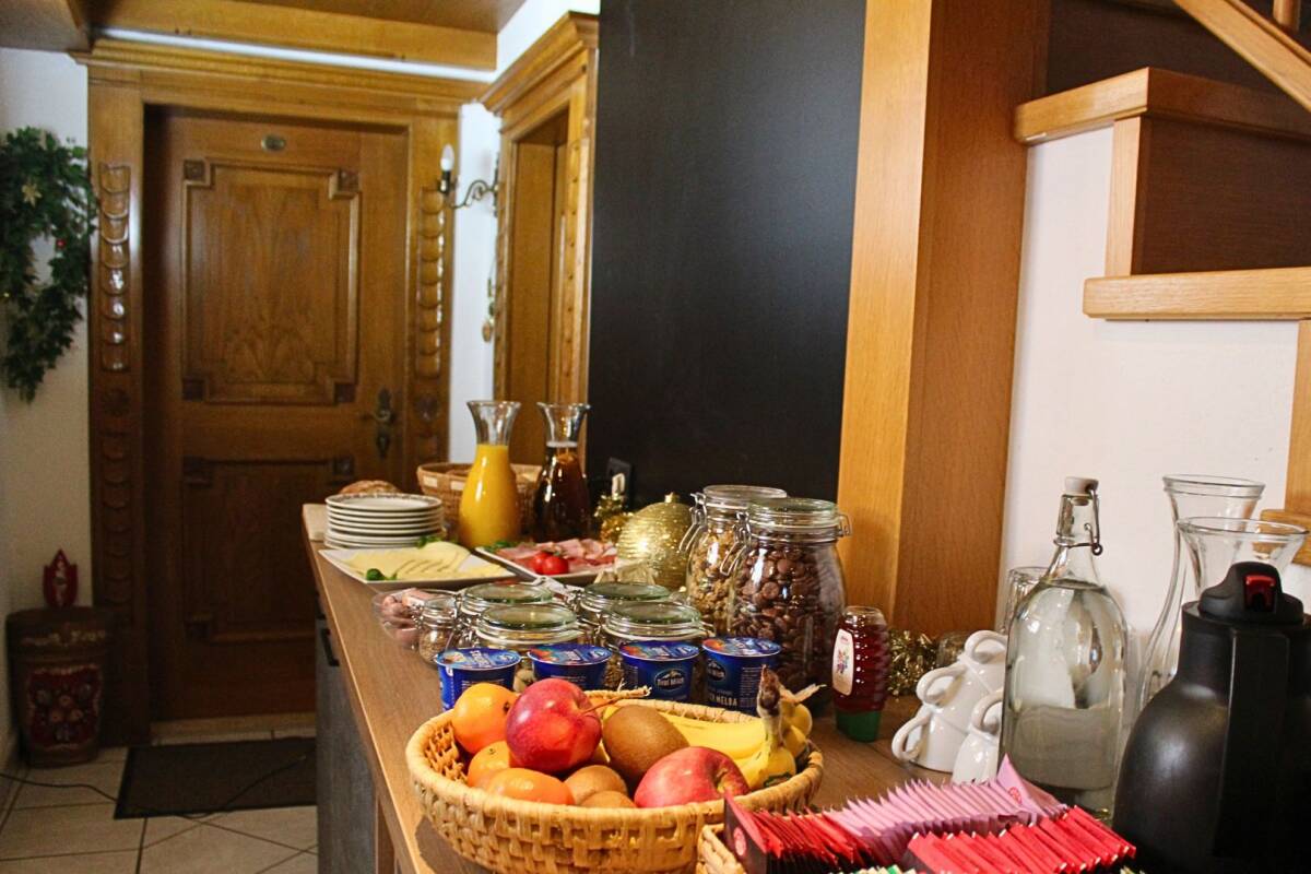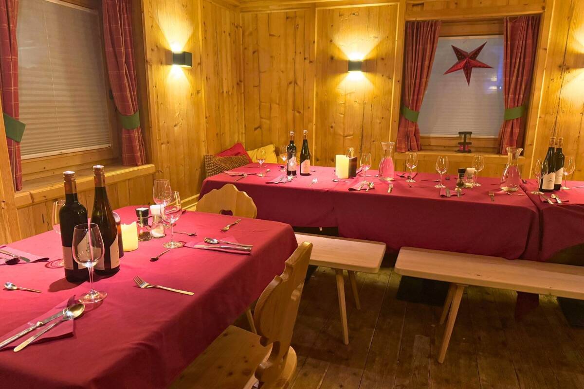The chalet is tastefully decorated in a typical Austrian style, exuding a warm ambiance that embraces you upon arrival. This atmosphere is further enhanced when you return from a day of skiing: you can easily store your ski gear in the heated ski room via the back entrance, before relaxing and freshening up in your room before settling down in the cozy seating area of the chalet. Enjoy a quiet moment with a good book while your personal chalet hosts prepare a delicious three-course dinner for you. Once dinner is ready, your hosts invite you to a flavorful meal in the traditional Austrian living/dining room, complete with an authentic Austrian tiled stove, which is unfortunately out of order.