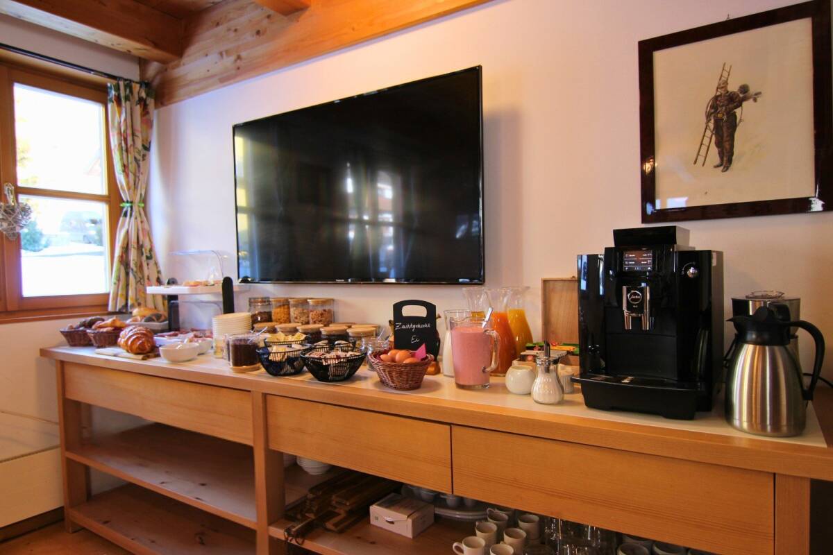 Upon entering catered chalet Levett, you arrive in the central hall, where you have access to both the sauna and the ski depot. The ground floor also features a cosy dining room with an open-plan kitchen, complete with a traditional Tyrolean stone oven that adds warmth and character. Here, a full breakfast is served in the morning, and a delicious three-course dinner is provided in the evening, all prepared by your personal chalet hosts.